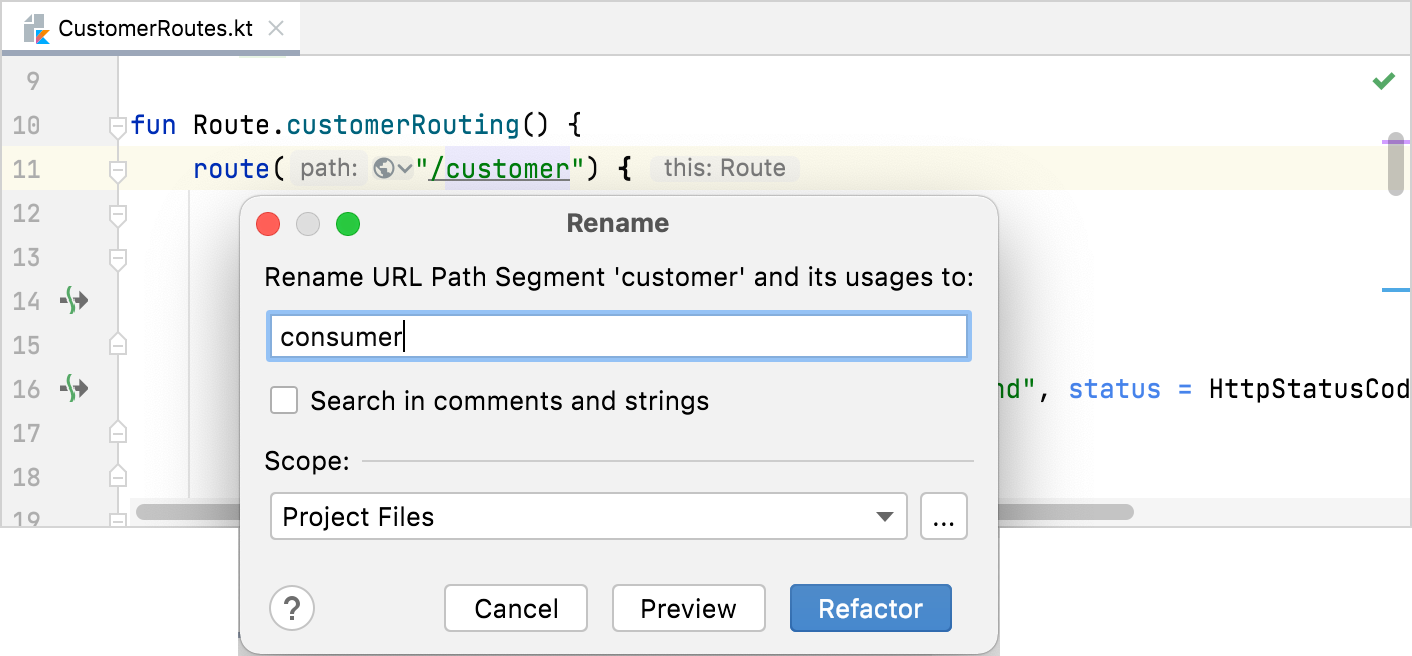在 IntelliJ IDEA 中,您可以使用重命名重构来重命名路由: