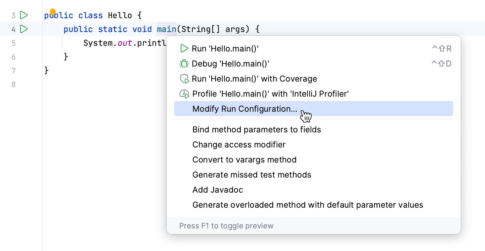 因此,每当您运行/调试或测试代码时,IntelliJ IDEA 要么使用现有的永久运行/调试配置,要么创建一个新的临时配置。