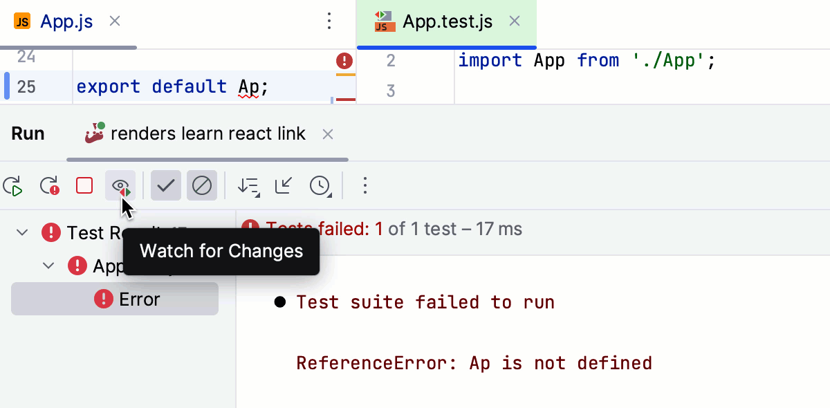 您可以直接在 IntelliJ IDEA 中使用 Jest 运行和调试测试。您可以在树视图中查看测试结果,并从那里轻松导航到测试源。测试状态显示在编辑器中测试的旁边,并提供快速运行或调试的选项。